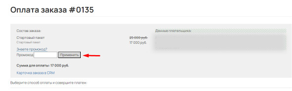 Если у вас есть промокод, вы можете ввести его в специальное поле после нажатия кнопки "оплатить участие"